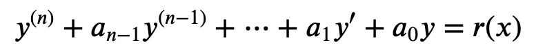 1. 론스키안 행렬식(Wronskian Determinant) 론스키안 행렬식은 유한 개 함수들이 일차독립인지 확인하기 위한 도구입니다. 론스키안 행렬식의 값이 0이 아닐 때는 이 함수 집합은 모두 일차독립이 됩니다. 반면, 행렬식의 값이 0이 되면 함수 집합은 일차종속이 됩니다. 2. 증명 함수집합이 구간 I에서 일차종속일 경우 아래식을 만족합니다. 이를 행렬에 대한 식으로 나타내면 다음과 같습니다. n-1번 미분한 식에 대한 행렬과 계수에 대한 곱을 표현하면 아래와 같이 나타낼 수 있습니다. k1, k2 ..., kn은 일차종속이기 때문에 자명하지 않은 해를 갖습니다. 따라서 행렬식의 값은 0이 됩니다. 반대로 일차독립인 경우 행렬식의 값은 0이 아니게 됩니다.
