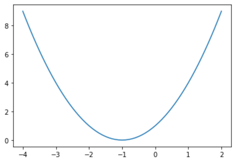 원래 생각했던 그래프와 다른 엉뚱한 그래프가 나왔습니다. matplotlib의 plot함수는 x와 y의 값이 같이 주어져야하는데 주어진 다항식의 계수 [1, 2, 1]로만 그래프가 만들어져서 이런 결과가 나왔습니다.