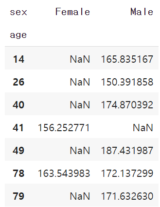 pivot을 사용하면 이런 식으로 나이와 성별에 따른 키 데이터를 확인할 수 있습니다.