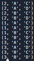 또한 product는 두 개 이상의 iterable을 입력값으로 받을 수 있습니다.