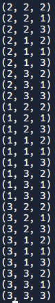 product를 사용하면 값의 중복을 허용하면서 순열을 만들 수 있습니다.